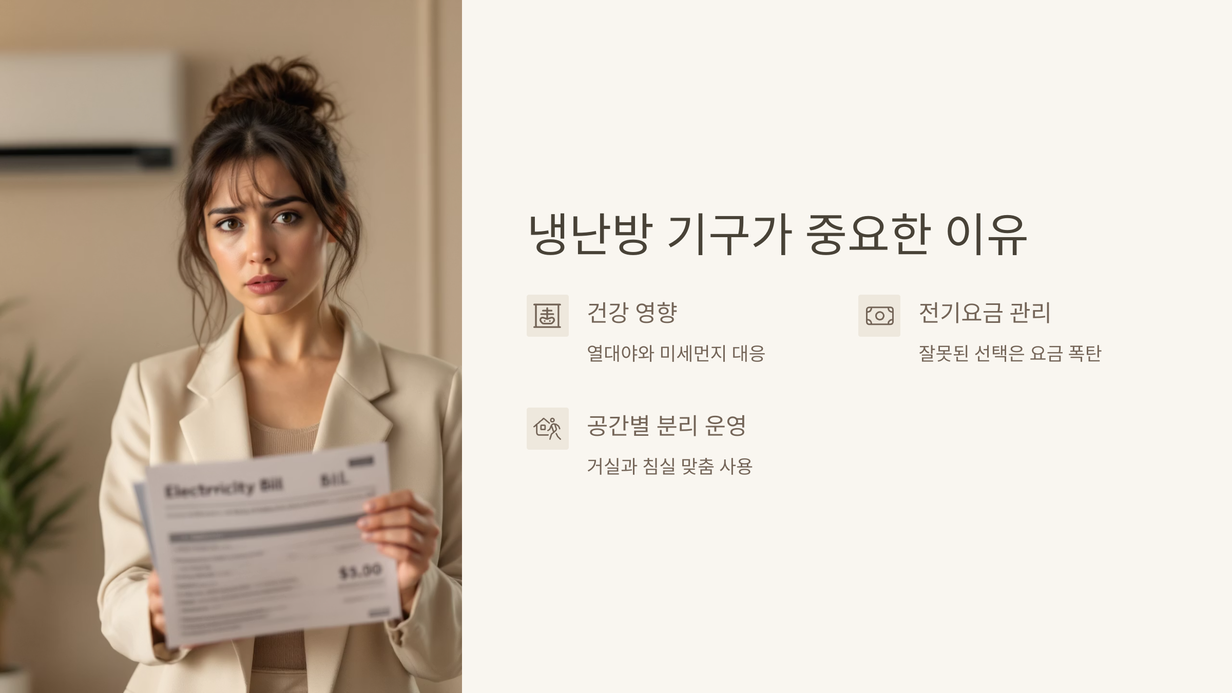 실내 온도 관리는 단순한 ‘쾌적함’의 문제가 아니에요. 열대야에 잠 못 이루는 밤, 갑자기 찾아오는 미세먼지와 추위까지 고려하면 냉난방 기구 종류 선택이 건강과 직결되기도 하죠.