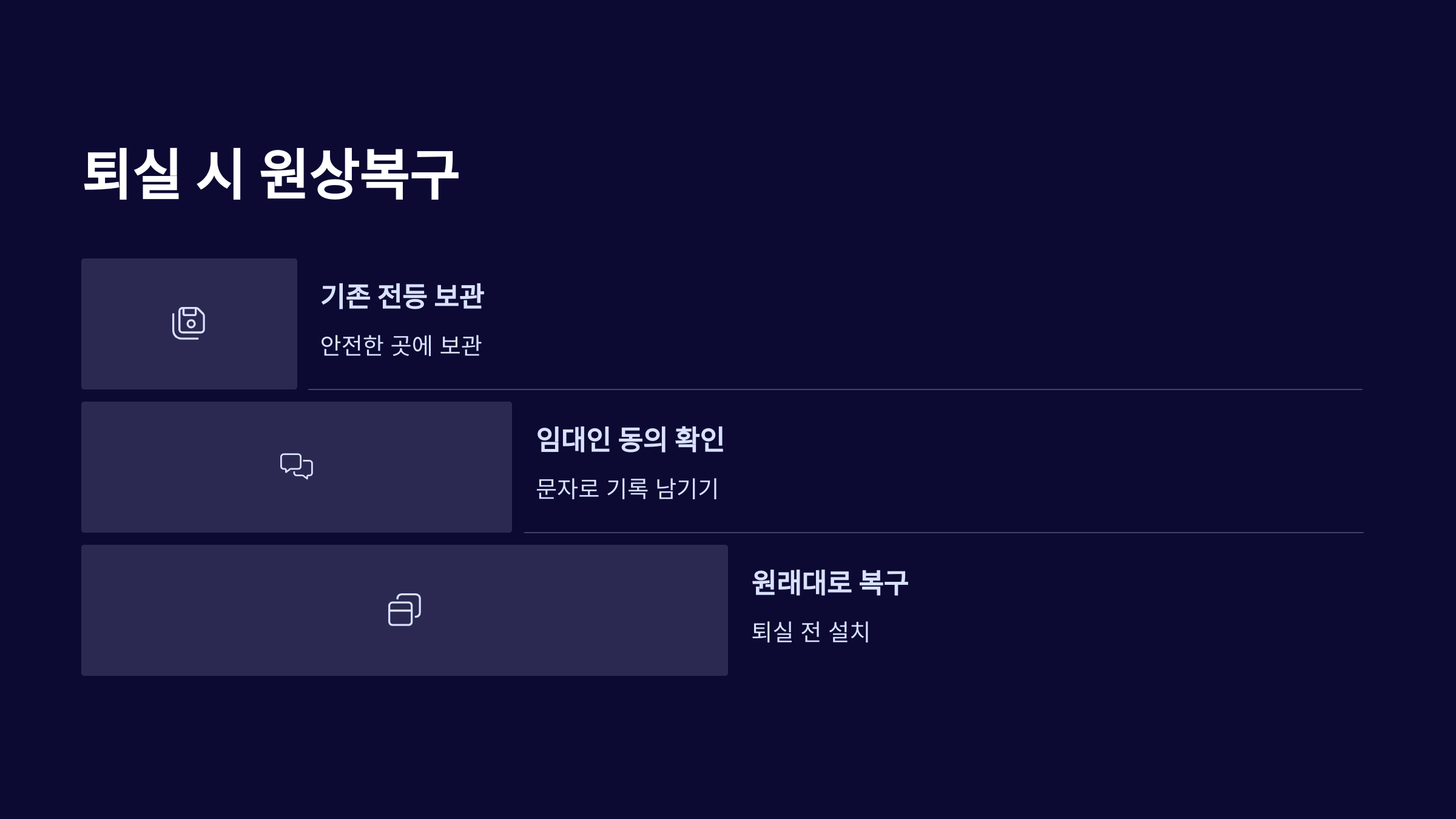 원상복구 시 유의사항 정리표