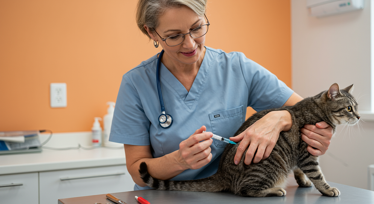 고양이 백신 접종은 질병별로 정해진 부위에 이루어집니다: