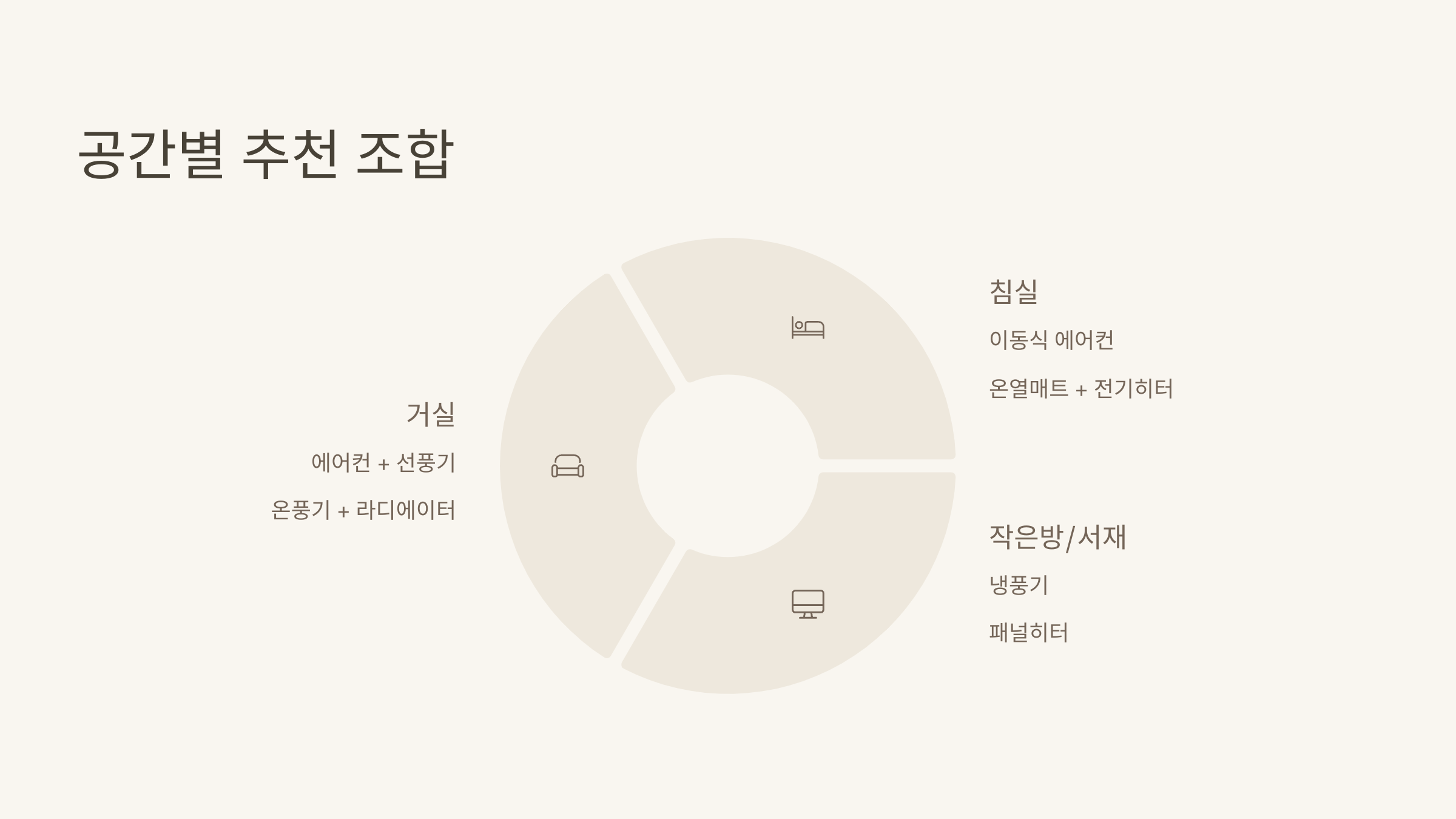| 공간 | 추천 냉방 | 추천 난방 |
