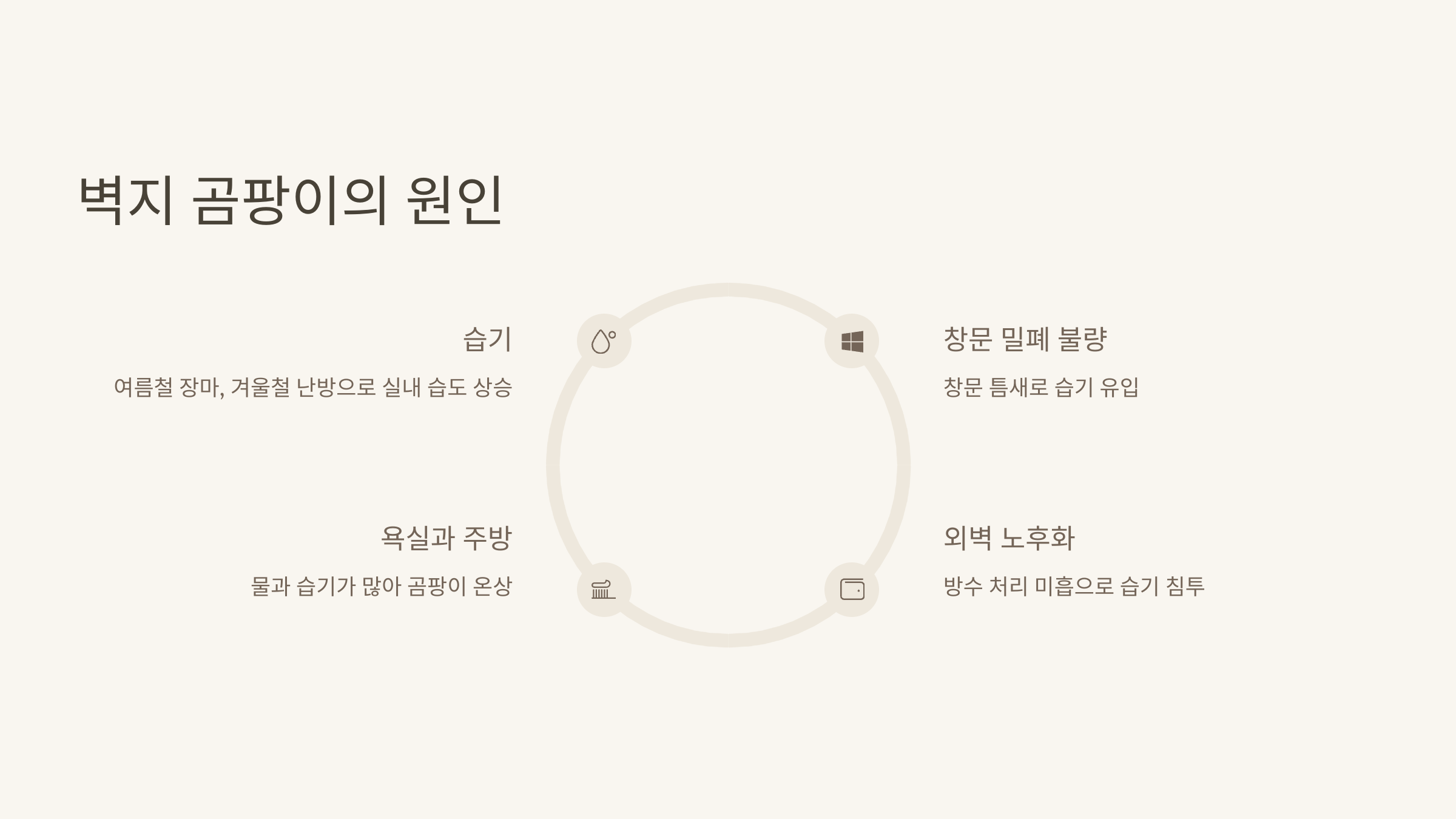 벽지에 곰팡이가 생기는 주요 원인은 습기예요. 특히 여름철 장마나 겨울철 난방을 사용하는 동안, 실내 습도가 높아지면 벽지에 곰팡이가 쉽게 자라요. 오래된 벽지나 벽지와 벽 사이에 공간이 좁으면 곰팡이 발생이 더 심해질 수 있어요.