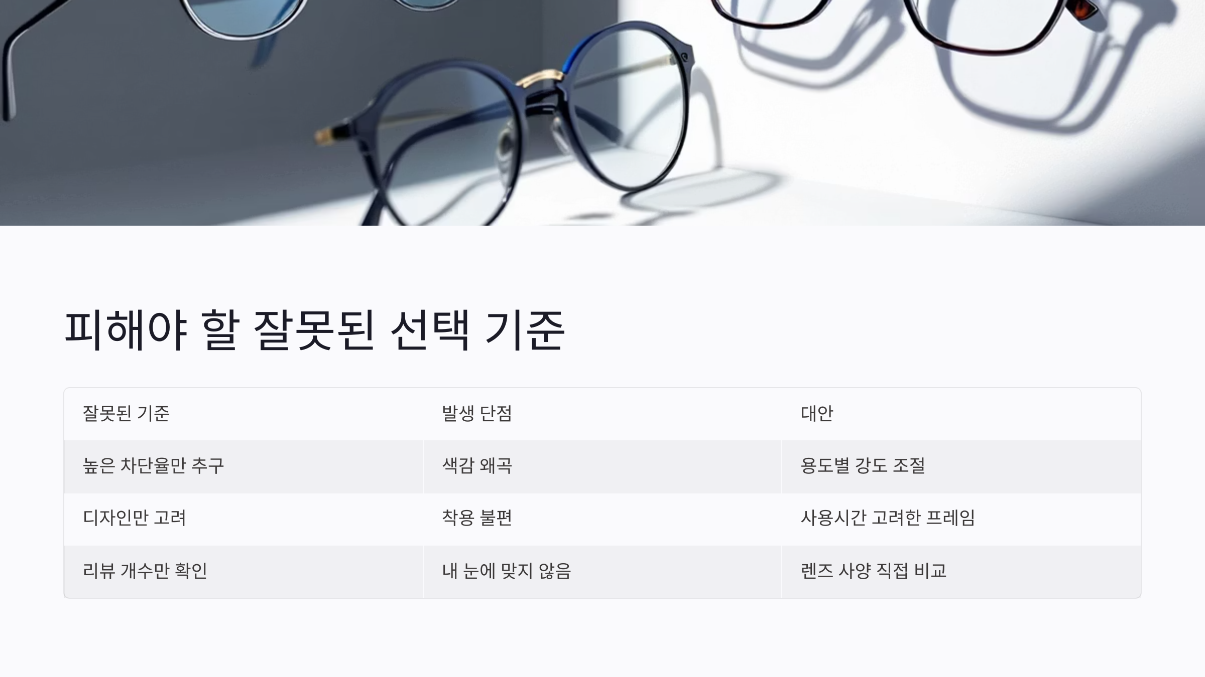 많은 분들이 블루라이트 차단 안경을 고를 때, 무심코 이런 기준으로 고르곤 해요. 하지만 이 기준들이 오히려 단점을 크게 만들 수 있다는 점, 꼭 기억하셔야 해요.