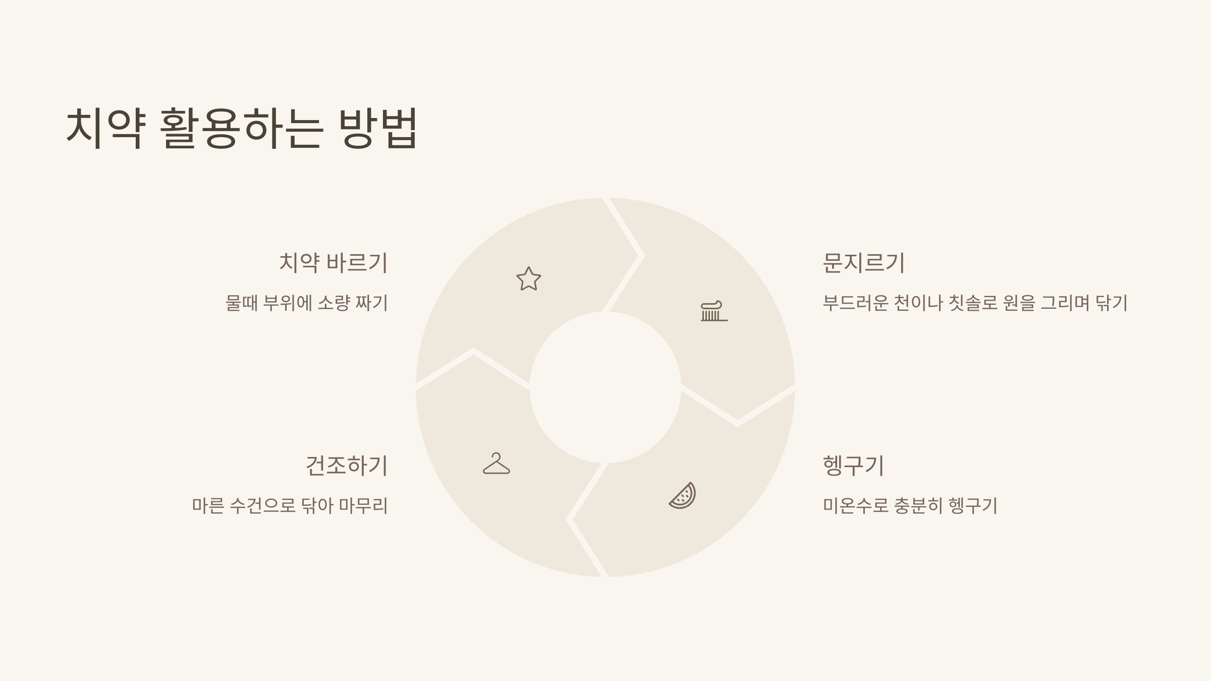3️⃣ 충분히 문지른 후 미온수로 헹구고 마른 수건으로 닦아 마무리!